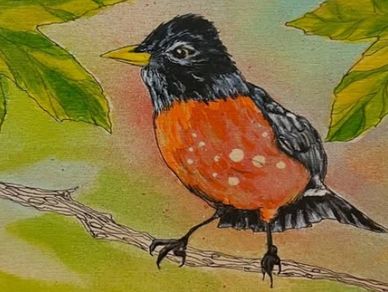 Jo Kaminsky is a retired RCMP Corporal and Canadian artist based in Abbotsford, BC. Her passion for art began in grade school and was reignited during her recovery from an injury sustained in the 2017 BC Wildfires. Exploring various mediums, Jo developed a unique style blending spray paint, acrylics, inks, and gold leaf. She draws inspiration from nature, especially the birds outside her window.
